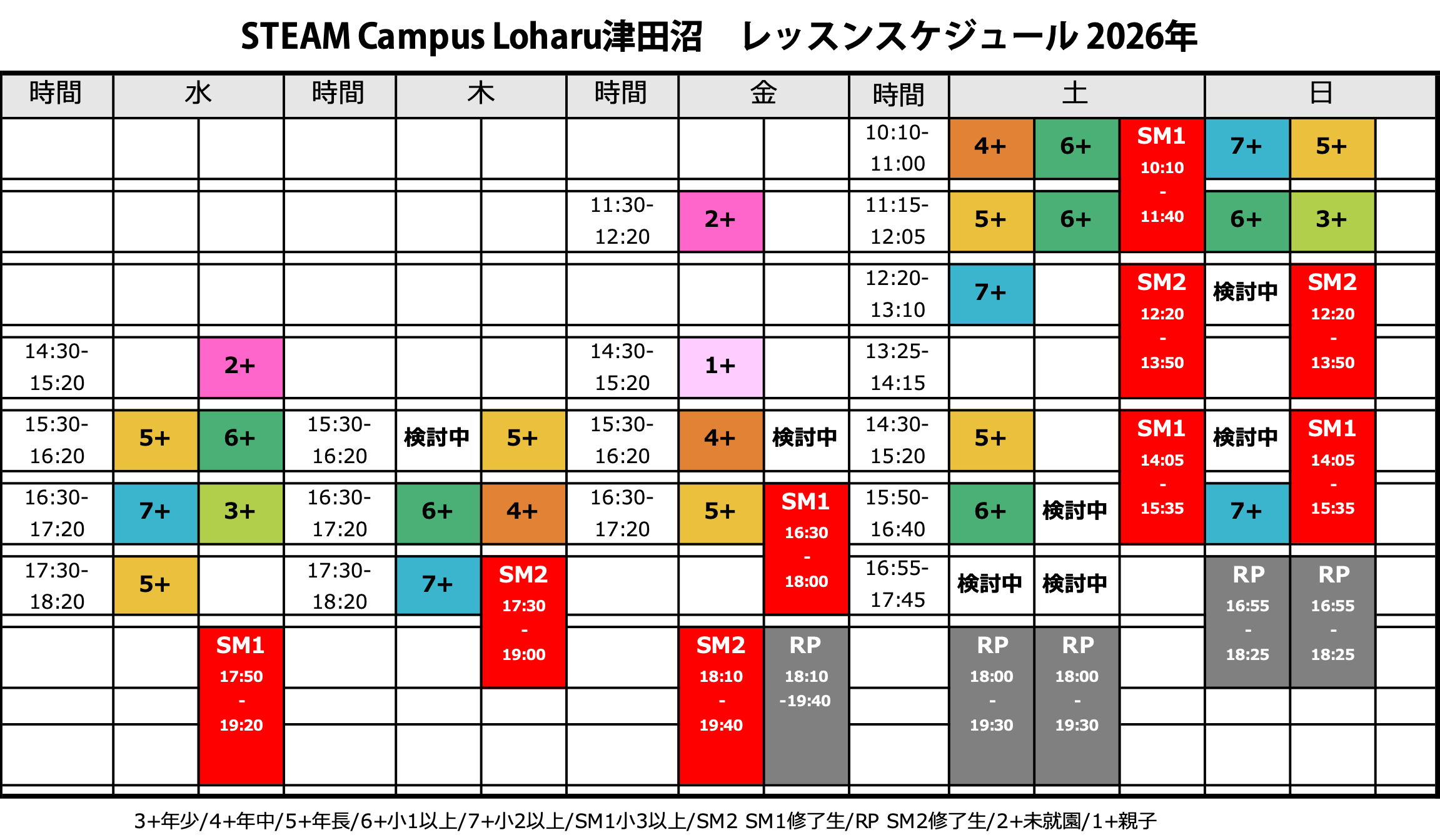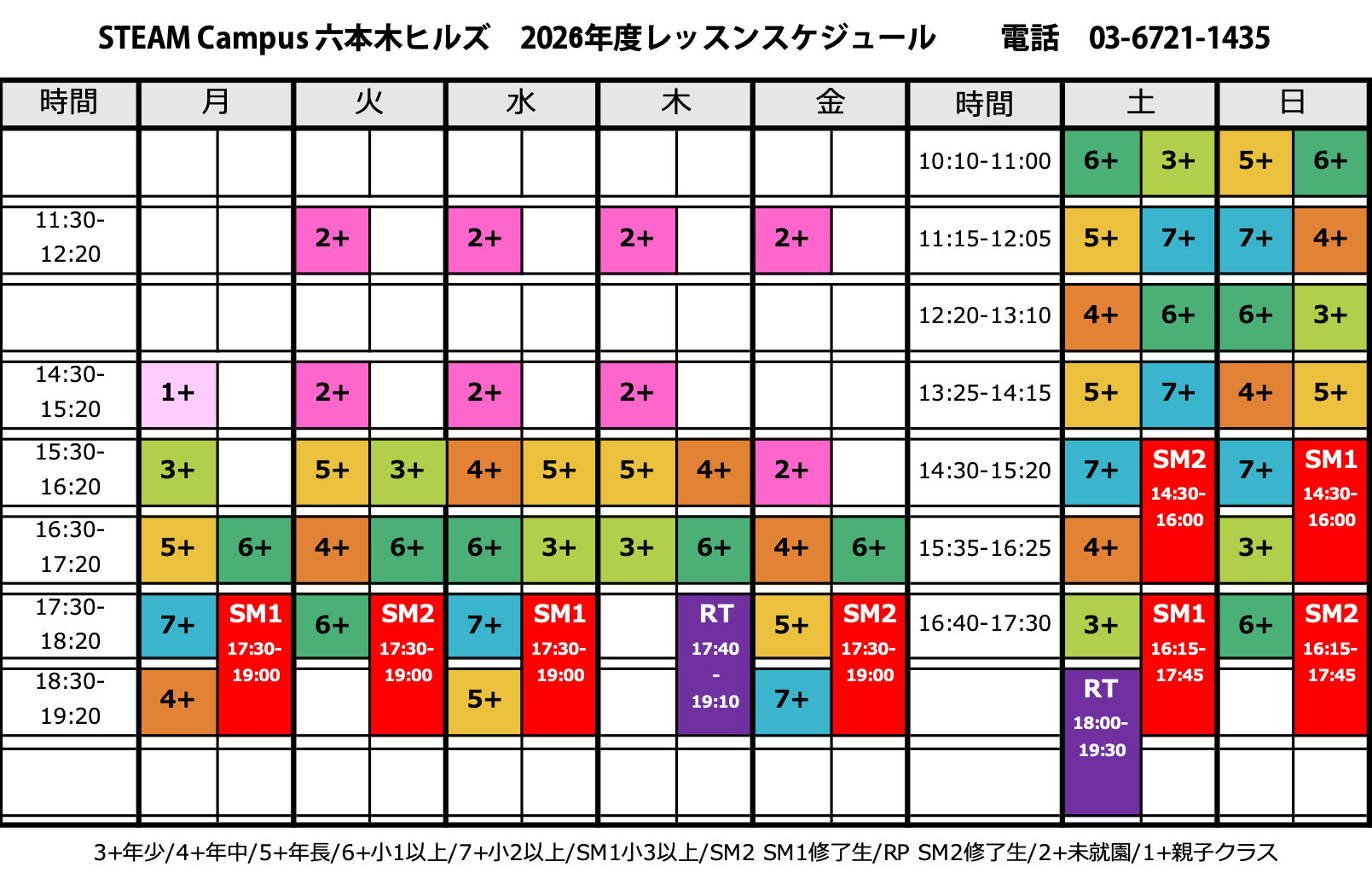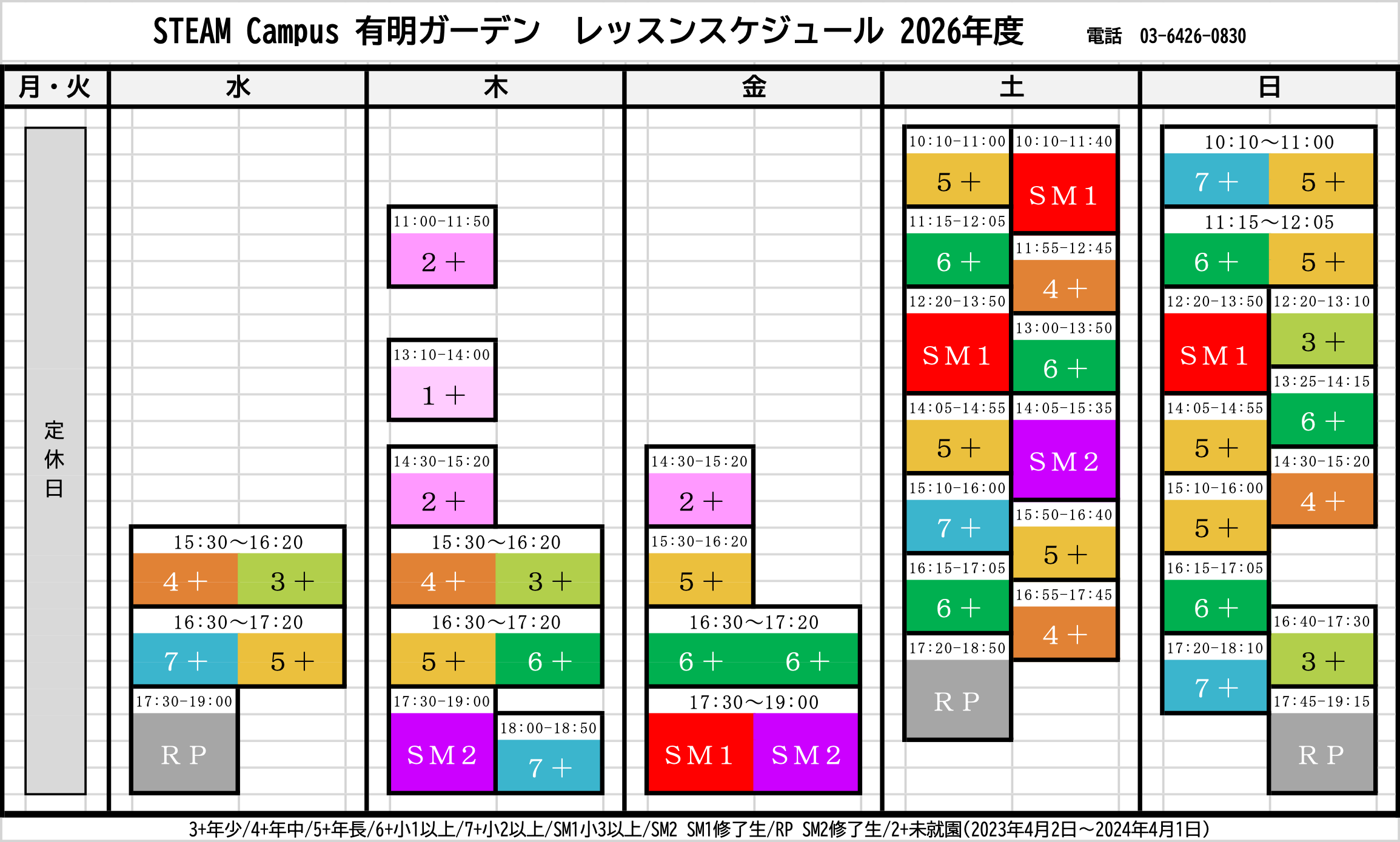 各スクールの2026年度レッスンスケジュールです。スクール名をタップすると、詳細がご覧いただけます。