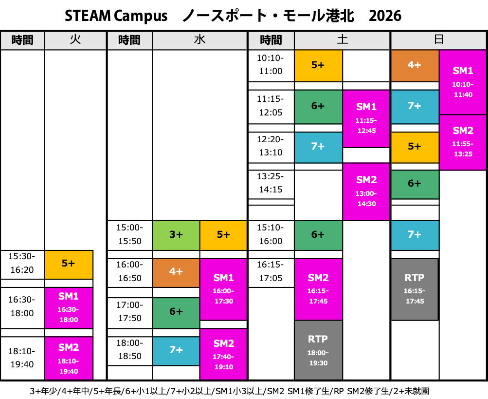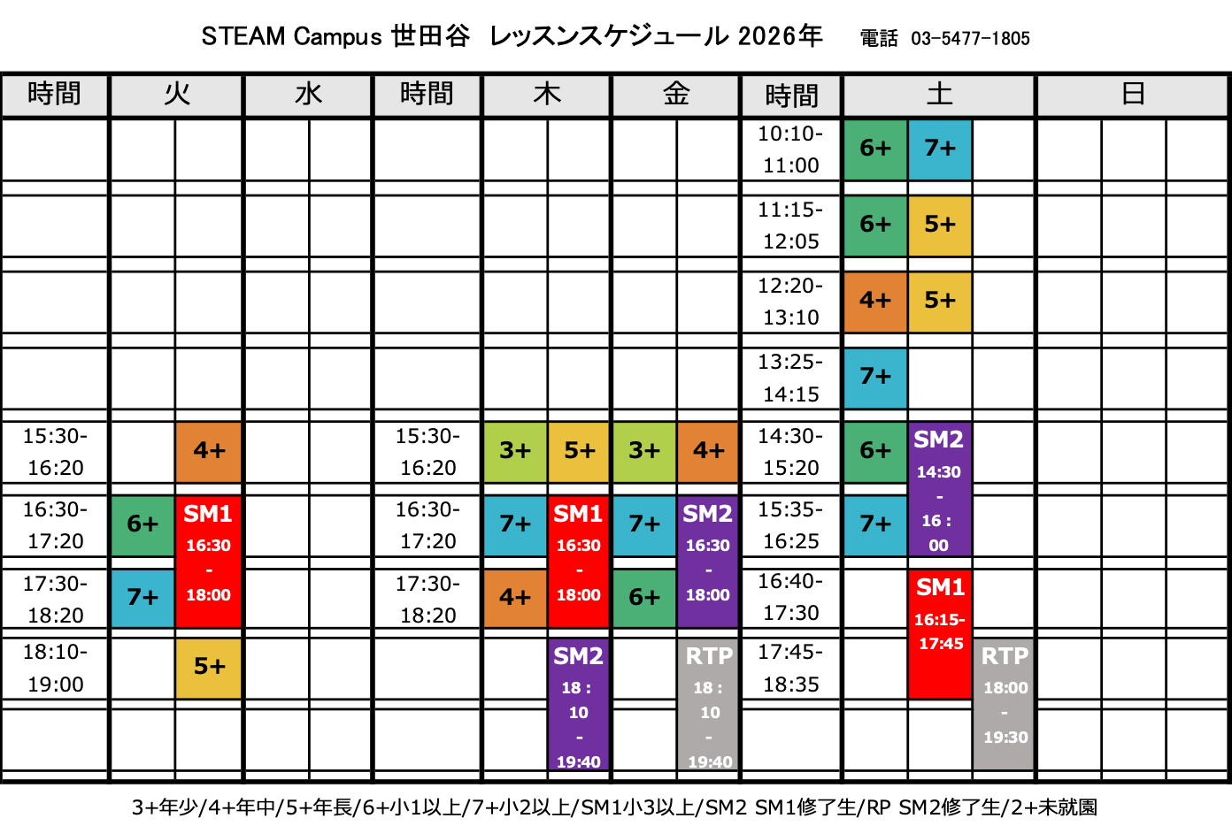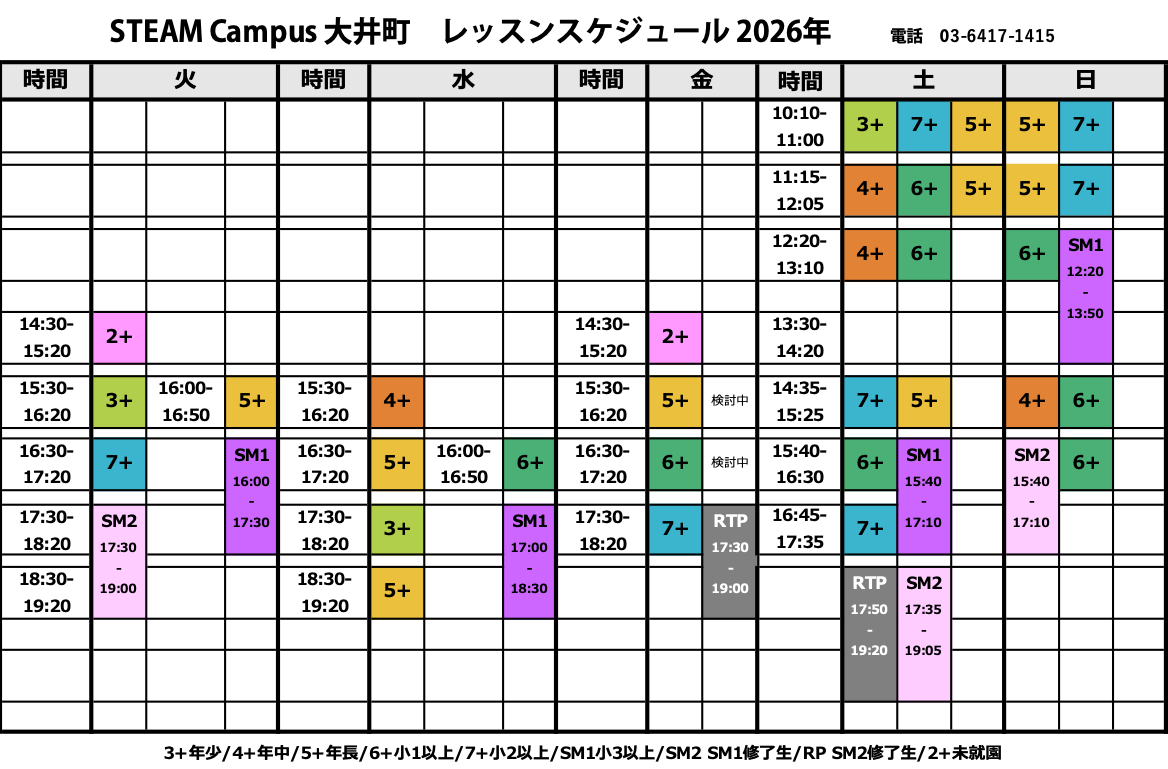 各スクールの2026年度レッスンスケジュールです。スクール名をタップすると、詳細がご覧いただけます。