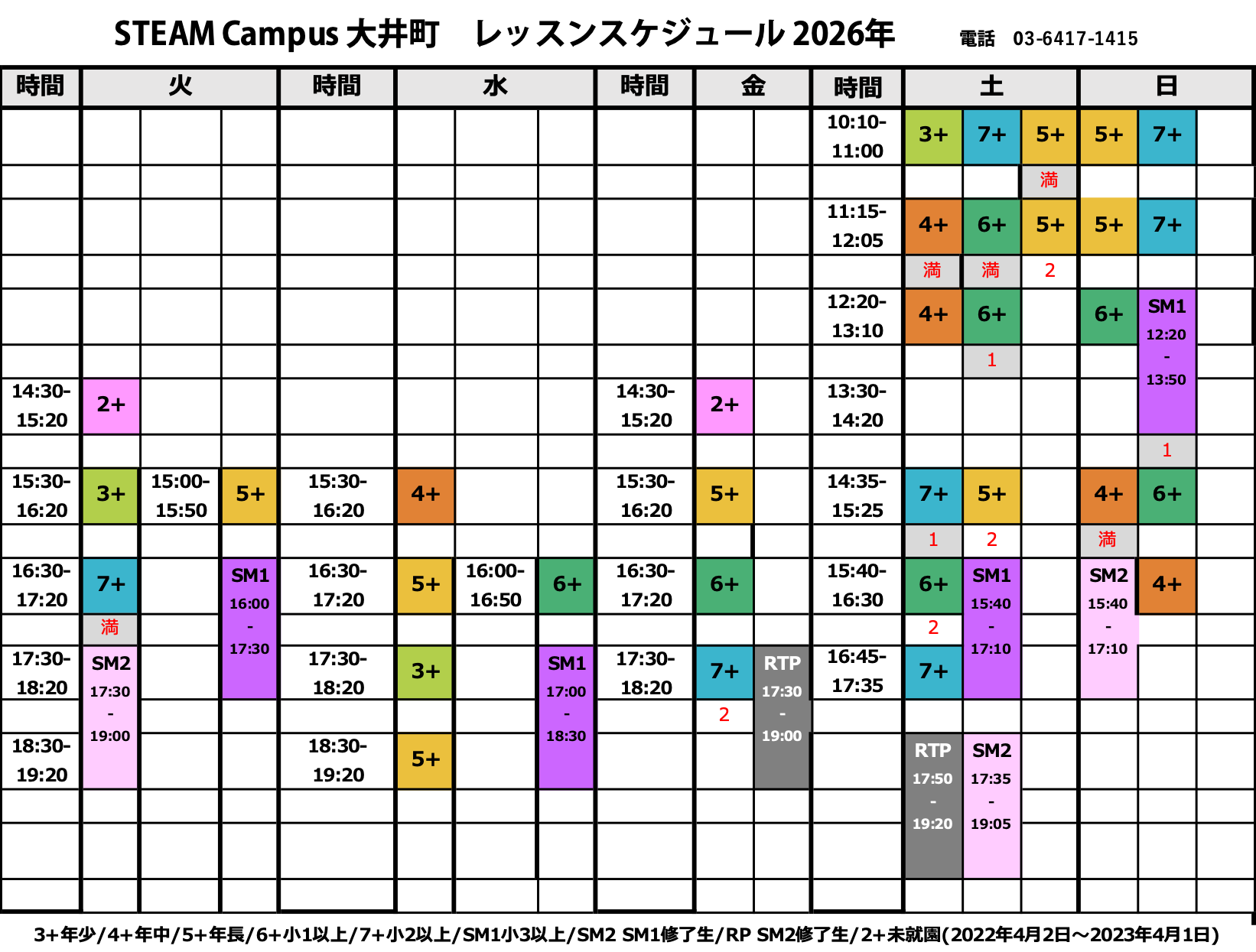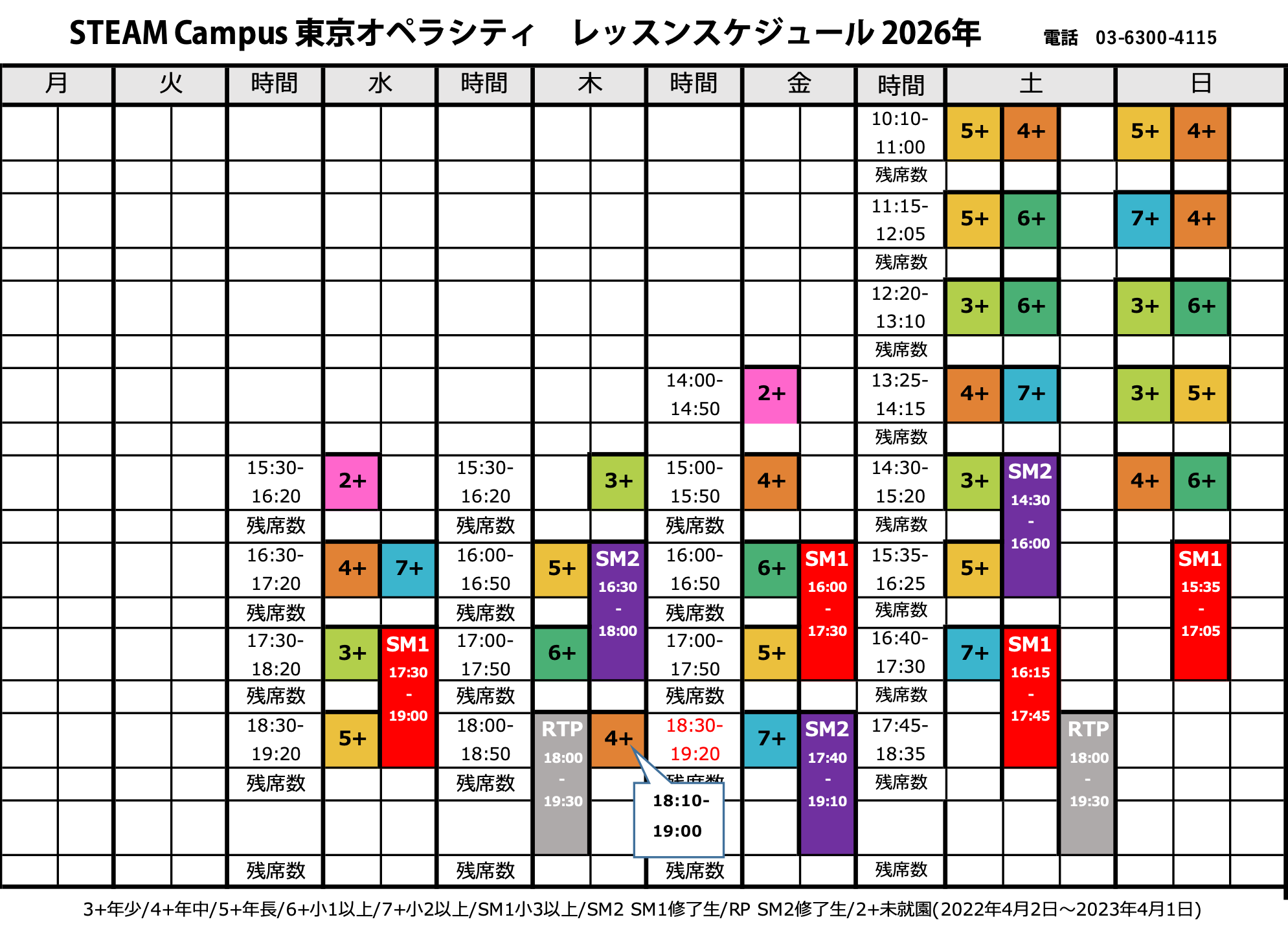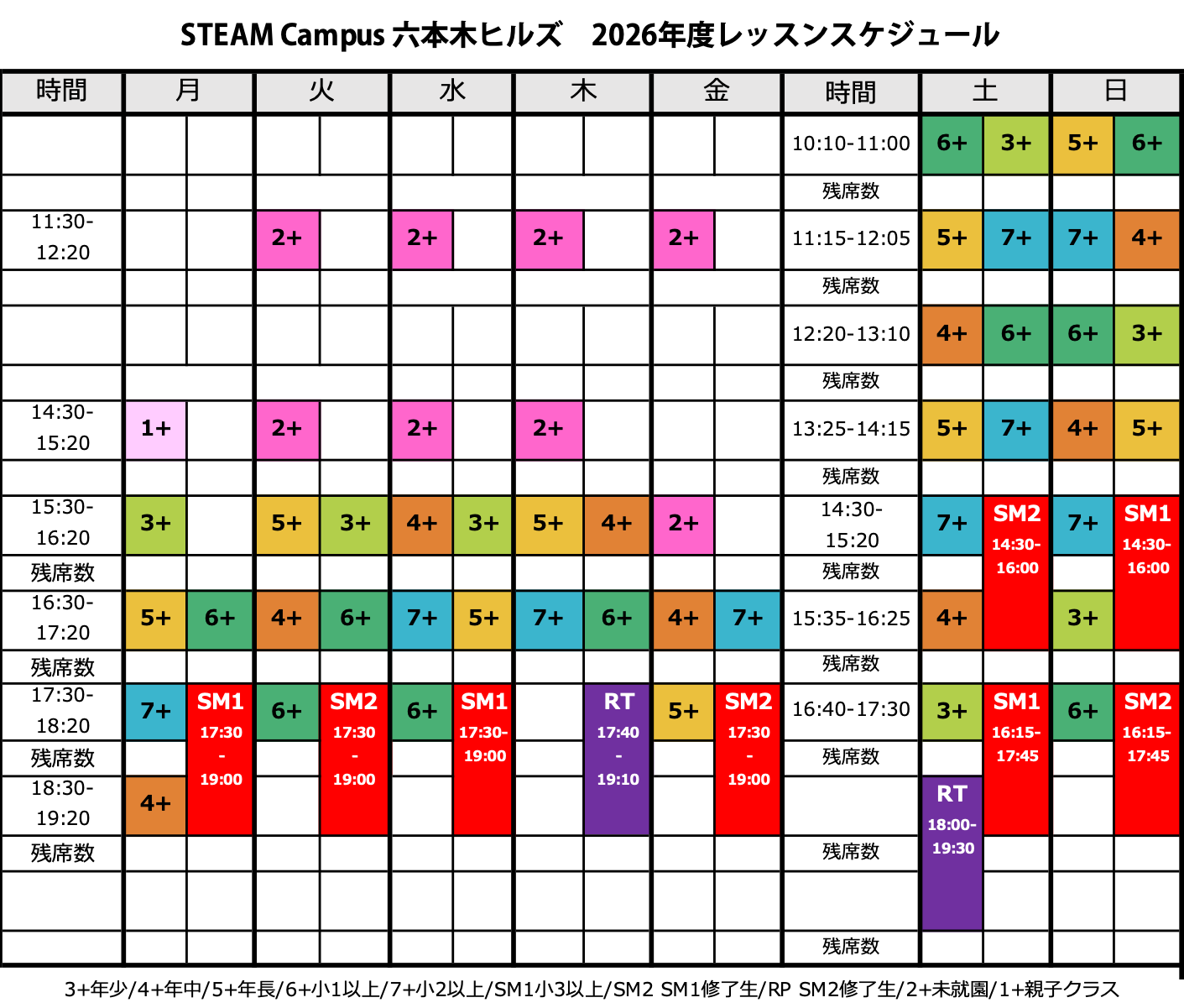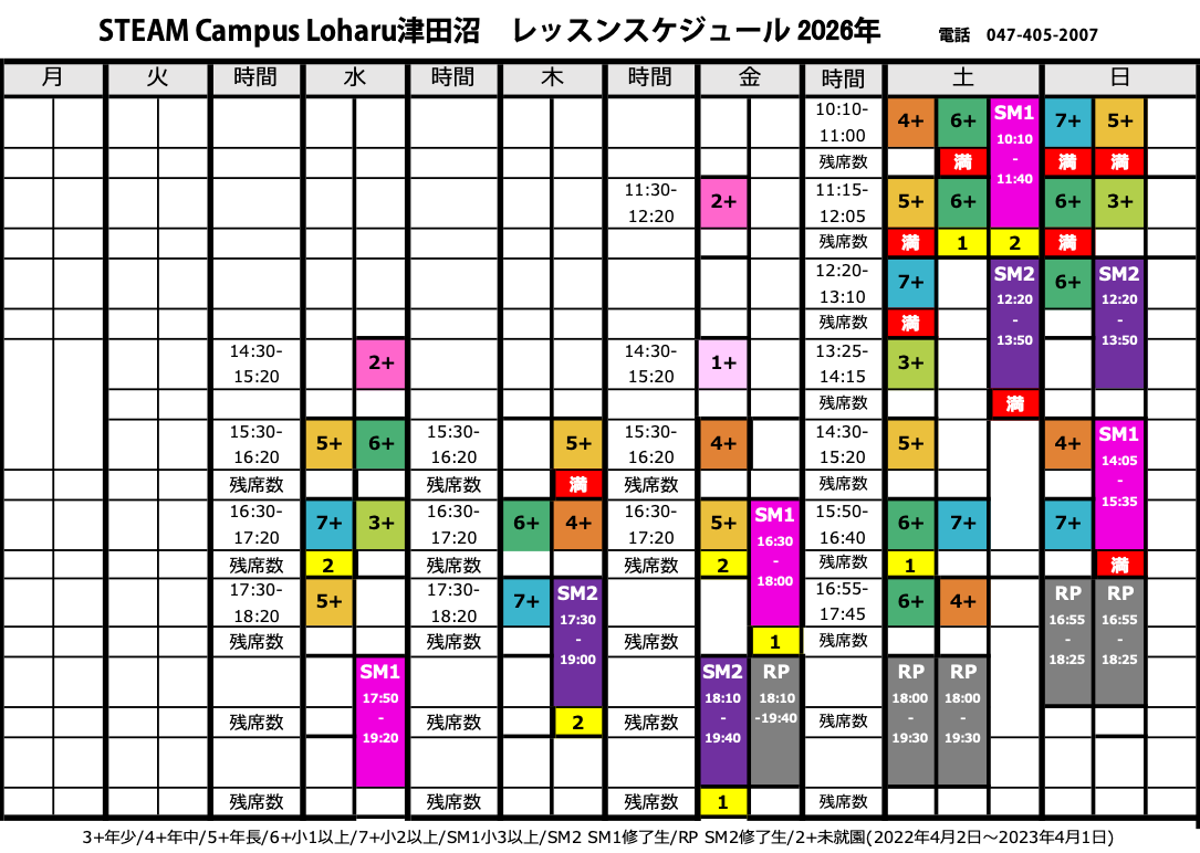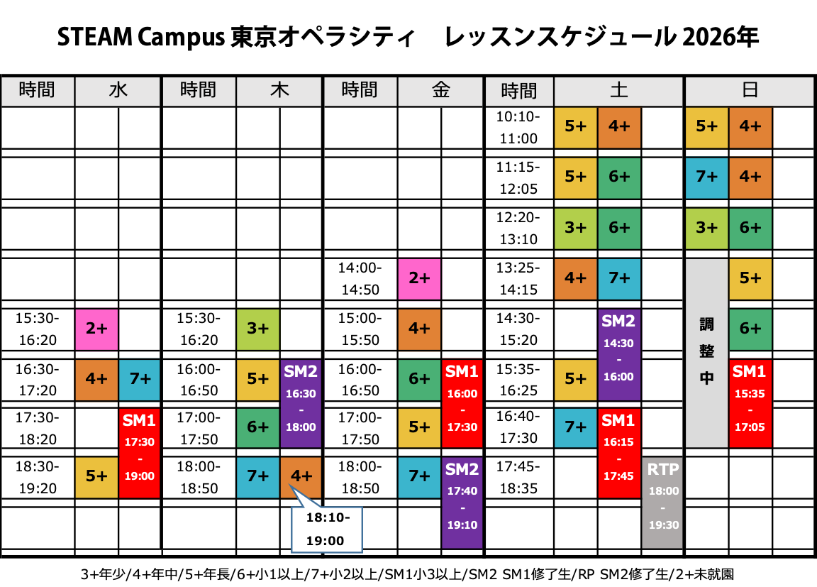 ※進級者がいないクラスについては、開講クラスが変更される場合があります。