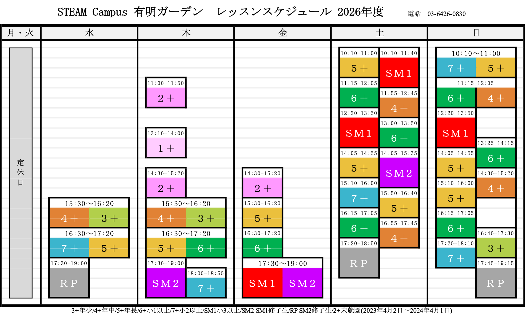 2026年度レッスンカレンダー