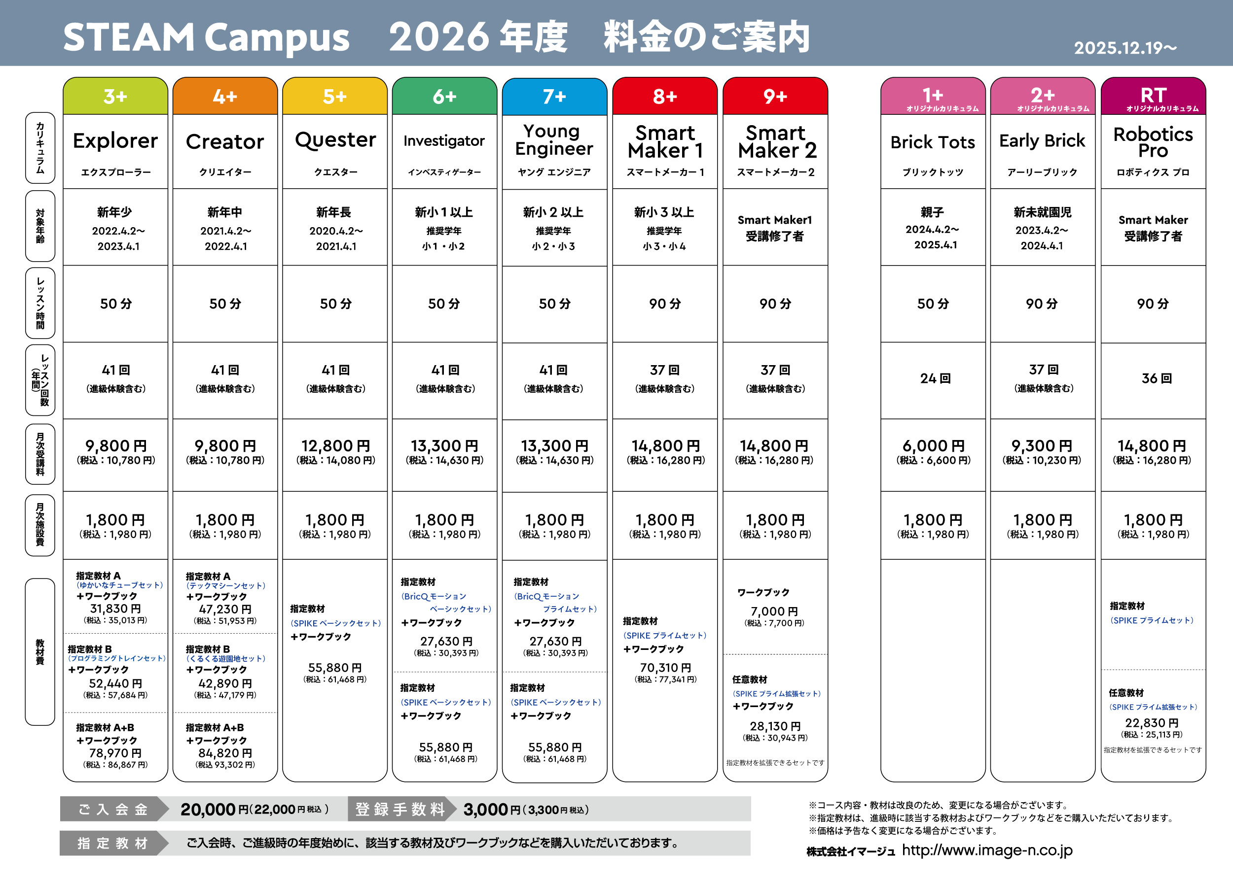 ※ ご請求金額のお振込みが確認できた時点で2026年度のクラス確定とさせていただきます。